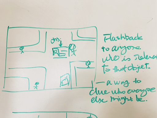 After much deliberation, we realized we couldn’t handle the topic of stalking with as much care as it needed in the timeframe we had and decided to pivot from our original idea. Rather than making an installation, we decided to focus on the playful, roleplaying aspect of our project to create a murder mystery game. We also maintained our core idea of mixing digital with analog in our game.